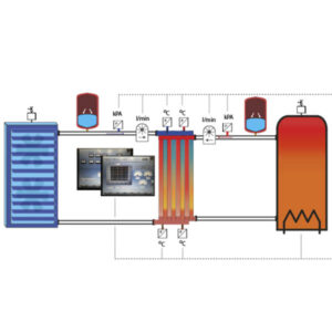 The equipment consists of a primary circuit which transports energy to a ?secondary circuit by a heat exchanger. Boiler and pumps are controlled individually via potentiometers on the front (or an operators panel or a PC).