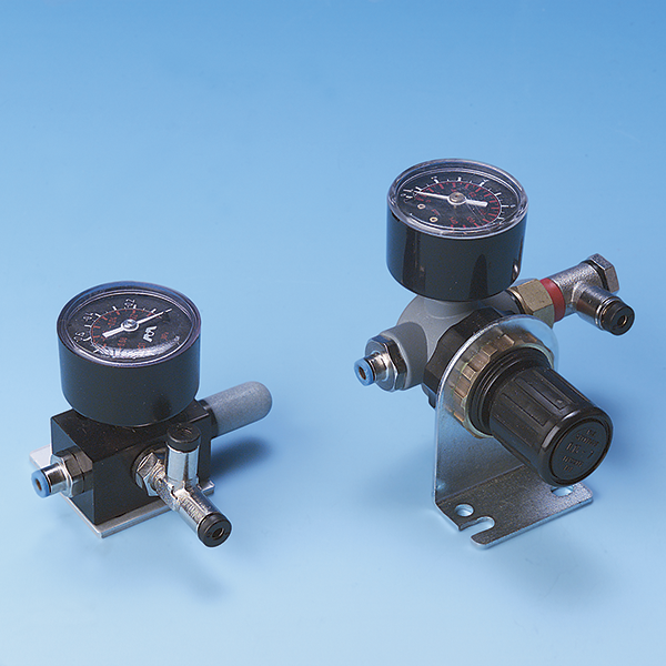 1 Pressure regulator with pressure gauge and non-return throttle valve