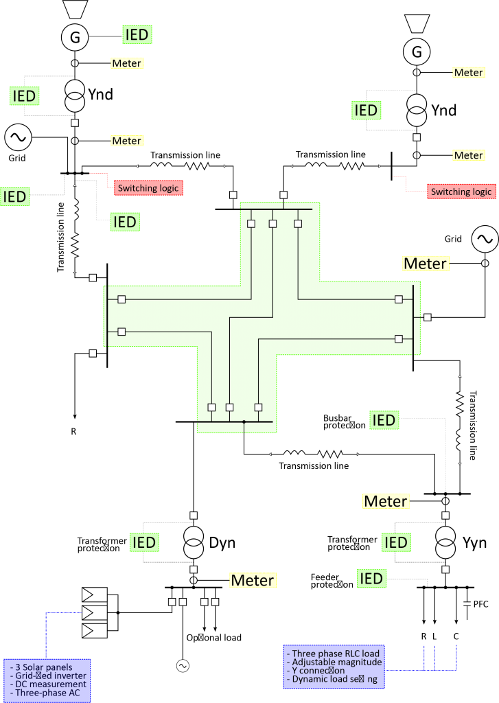 - Possibility to create a redundant power grid and study the operation of faulty transmission lines